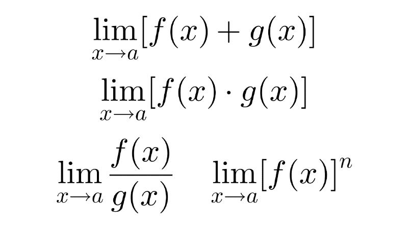 Los límites cumplen una serie de propiedades que se pueden aplicar para hallarlos de forma más rápida. Veremos a continuación algunas que involucran operaciones entre funciones.